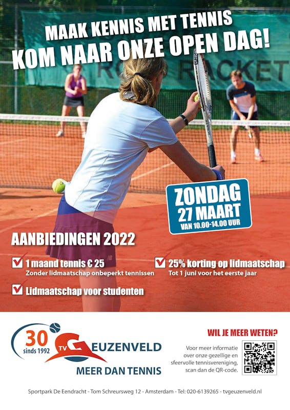 Kom naar onze open dag om vrijblijvend een balletje te slaan met een vriend of vriendin óf kom alleen om een balletje te slaan met één van onze leden. Rackets en ballen zijn op de club aanwezig.