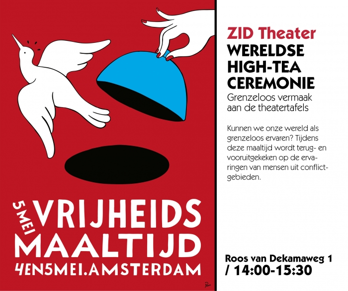 Spelers van ZID heten je welkom bij een high tea ceremonie uit verschillende werelddelen. Verhalen over wereldgrenzen en persoonlijke grenzen worden uitgewisseld. Iedereen van 8 tot 80 jaar kan meedoen aan deze theatertafels. De spelers laten op deze Bevrijdingsdag zien hoe zij vrijheid ervaren en daarna kunnen de gasten meepraten over de thema's vrijheid en grenzen.